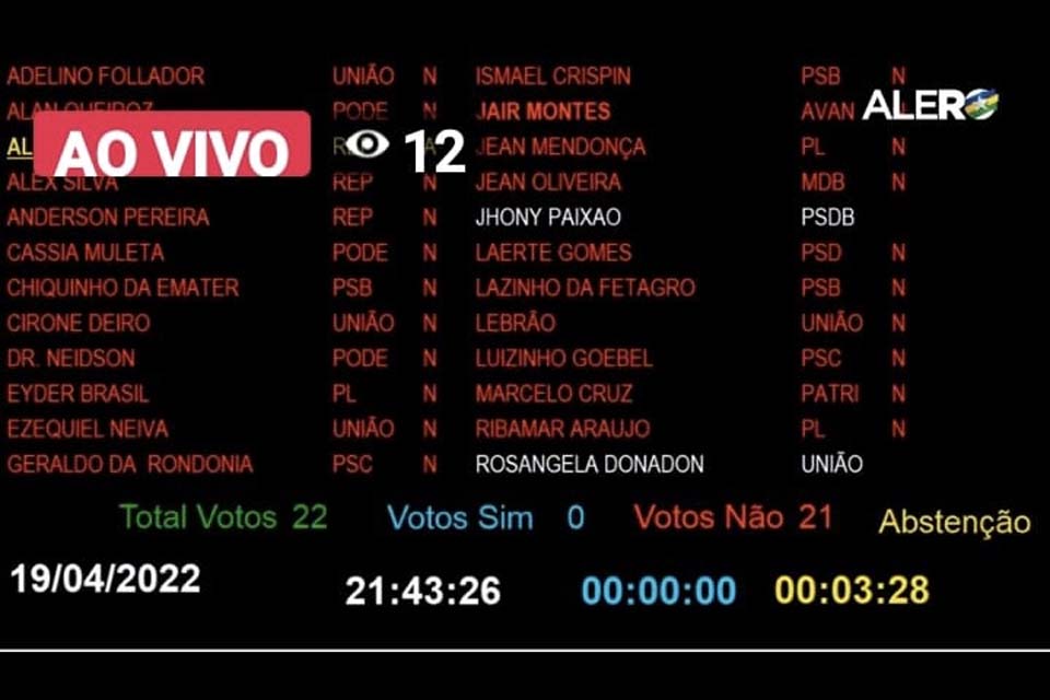 A Casa de Leis rejeitou o nome indicado pelo chefe do Executivo para assumir a posição de conselheiro do Tribunal de Contas (TCE/RO).