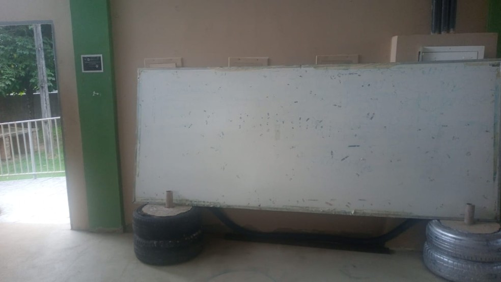Em vídeos que o g1 teve acesso, uma mãe mostra as dependências da escola apontando as principais reclamações, que vão do chão até o teto.
