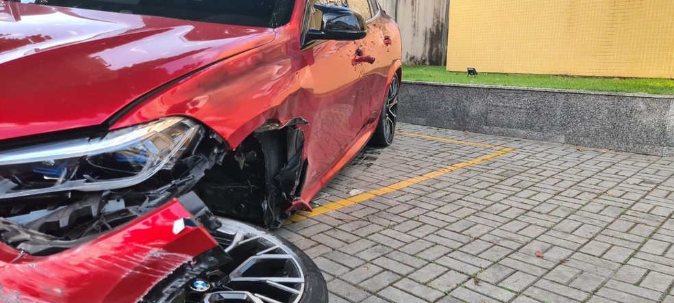 BMW teve a roda dianteira destruída — Foto: Marcos Nunes/Agência O Globo